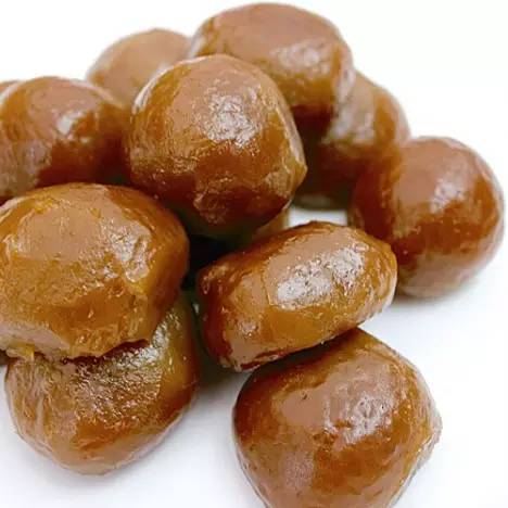 2 餡子的原料比較講究,需選肥厚之豬板油,去皮筋,摻和精制白糖,制成顆粒狀待用,以多種果仁、瓜子仁和糖瓜條等與白糖加工成蓋糖;然后將板油粒與蓋糖裹入劑子,揉壓成扁圓狀,蒸熟即可。