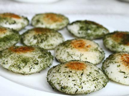 2加上海藻,搟成薄片,再折起來用,炭火烘烤制成,入口松脆香甜。