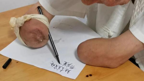 信心大增的他,接著學(xué)會(huì)了用殘臂穿衣服、洗漱、上廁所等,能基本像正常人一樣生活了。