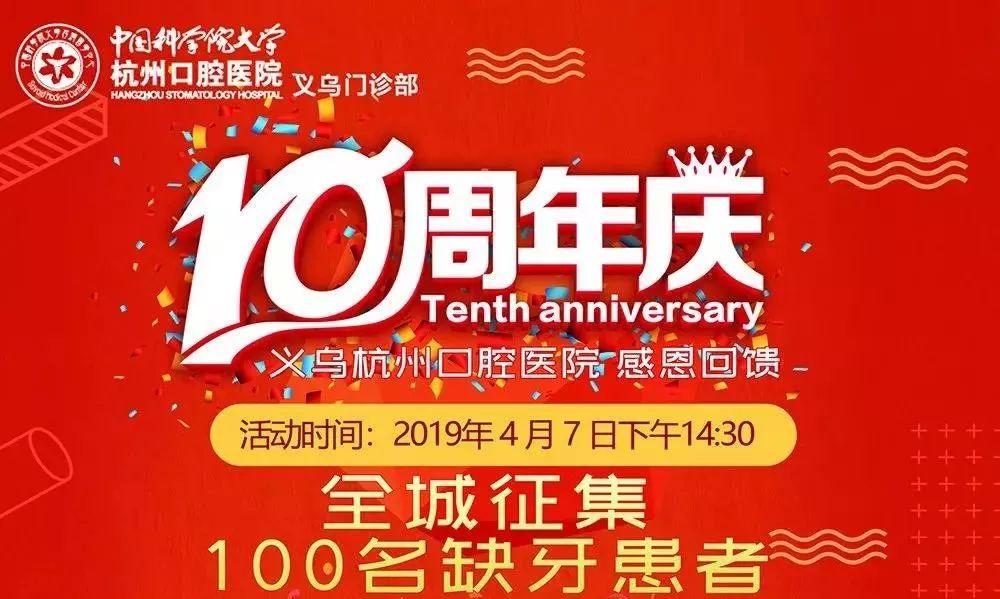 4月7日下午2點30分,為慶祝義烏杭州口腔醫(yī)院建院10周年,義烏商報新媒體中心與義烏杭州口腔醫(yī)院將舉辦一場大型種植牙直播活動,讓你親眼見證種植牙的科學與神奇, 零距離直擊種牙全過程,義烏人千萬別錯過了,凡到醫(yī)院觀摩直播活動的缺牙者還有好東西領。限額100名,還不趕快報名!