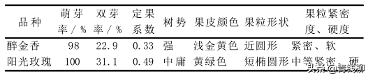 注:“醉金香”和“陽光玫瑰”前期均經(jīng)過催芽處理,故萌芽率較高。