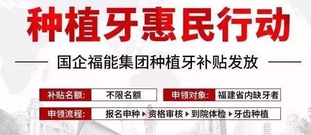 為響應(yīng)健康福建2030計劃,發(fā)揚(yáng)國企責(zé)任使命擔(dān)當(dāng),提升大家愛牙護(hù)齒健康意識,及時修復(fù)缺失牙,“福建省愛牙工程”公布了“種植牙惠民補(bǔ)貼領(lǐng)取通知”!同步啟動“拯救問題牙”假牙收購計劃,凡存在牙齒缺失、松動的市民,均可按程序申領(lǐng)福能集團(tuán)缺牙專項補(bǔ)貼金!