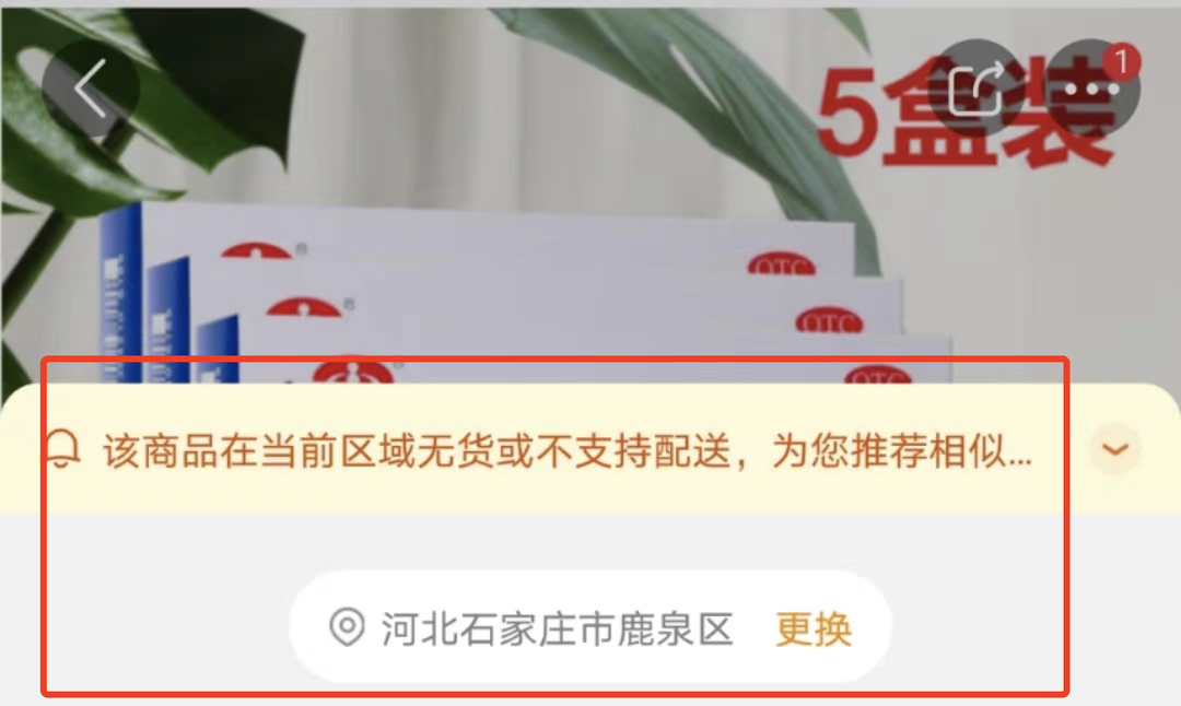除了線下商店,電商渠道也受到影響。淘寶平臺(tái)中,以嶺醫(yī)藥旗艦店的連花清瘟在石家莊地區(qū)仍然正常售賣;而京東平臺(tái)上,若將收貨地址選為石家莊,平臺(tái)則顯示“該商品在當(dāng)前區(qū)域無貨或不支持配送”。