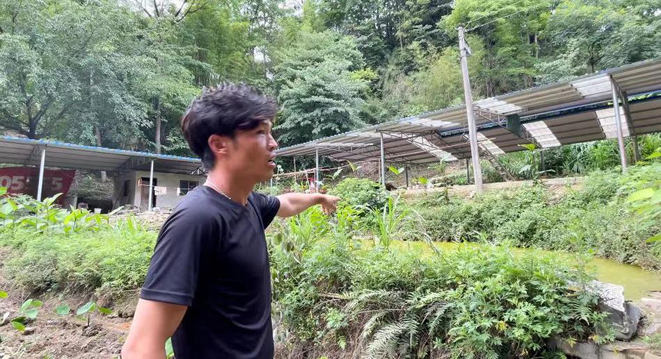 水塘上方曾是他家及爺爺、叔伯們家的位置,因無人居住,經家族商議后,修成了牛棚。