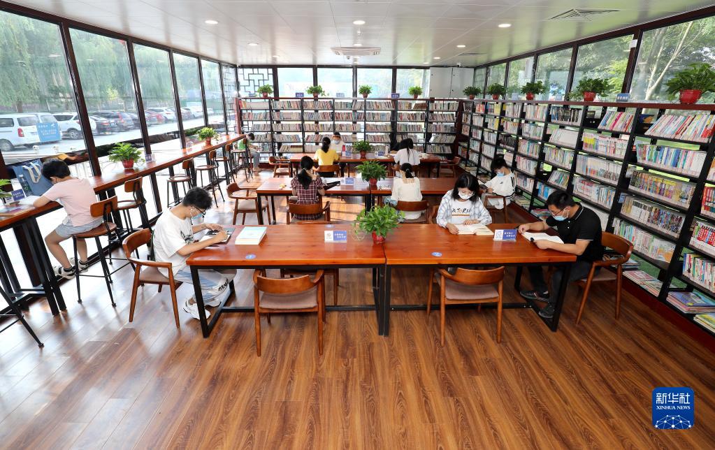 2021年8月21日,讀者在河北省石家莊市藁城區(qū)人民廣場“24小時智慧圖書館”內(nèi)閱讀。新華社記者 駱學峰 攝