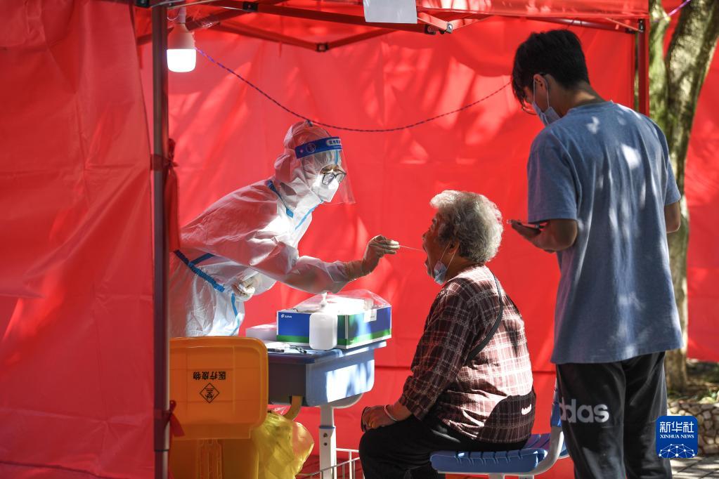 2022年9月5日,醫(yī)護人員在貴州省貴陽市云巖區(qū)大營路街道中天花園社區(qū)給市民做核酸檢測。新華社記者 楊文斌 攝