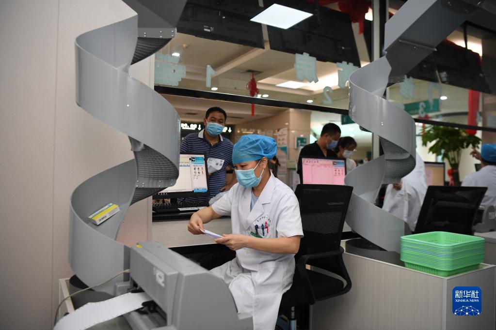 2021年8月11日,醫(yī)務(wù)人員在湖南省長沙市第一醫(yī)院門診智慧藥房為患者發(fā)放藥物。新華社記者 薛宇舸 攝
