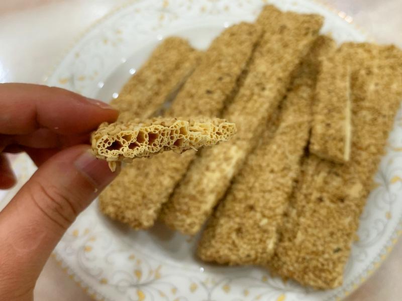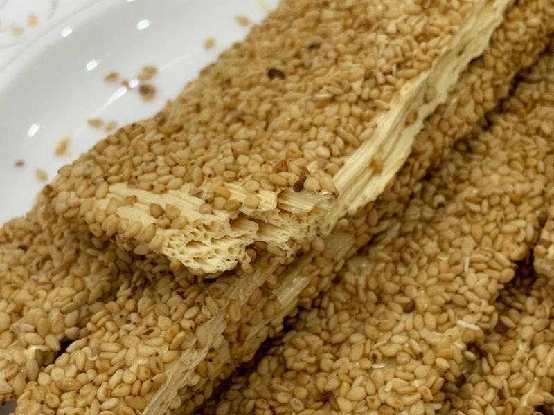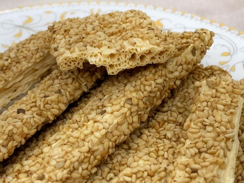 這種芝麻糖,只要稍微用手一捏,就會酥的掉渣,你看芝麻糖中間都是空心的,是用純麥芽和玉米面做的,沒有任何添加劑,香精,是純綠色的食物,至于具體的做工我并不了解,但是從小吃到大,每年冬天都要吃上十幾袋子,香甜,不粘牙,不齁嗓子,真的很神奇。