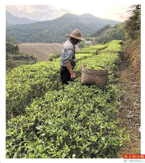 一條溪流從山谷穿過,工人們正在對面山上采茶。朋伯帶領(lǐng)南都記者驅(qū)車爬上山腰,然后下車參觀茶園。