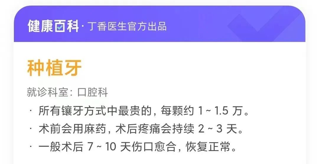 丁香醫(yī)生小程序里的“種植牙”顯示每顆約需要1~1.5萬元