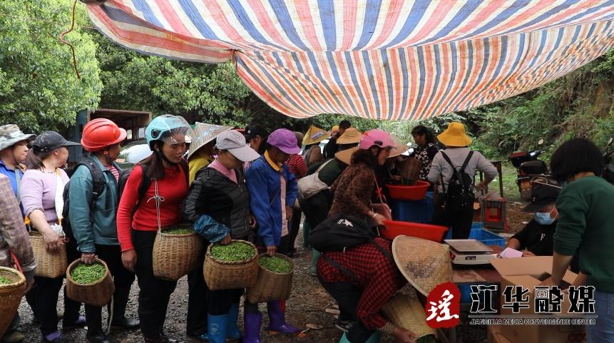 時下茶園每天茶樹吐綠不斷,需要大量的采茶工及時的把新發(fā)的茶葉在當天及時采摘,除了附近各村的村民,茶場還擴大招工面,從臨近鄉(xiāng)鎮(zhèn)請人過來幫忙,保障春茶采摘用工。整個茶場每天采茶1000多斤,平均每名采茶工每天能有200元的收入,全部發(fā)放的工資達到10萬元以上。