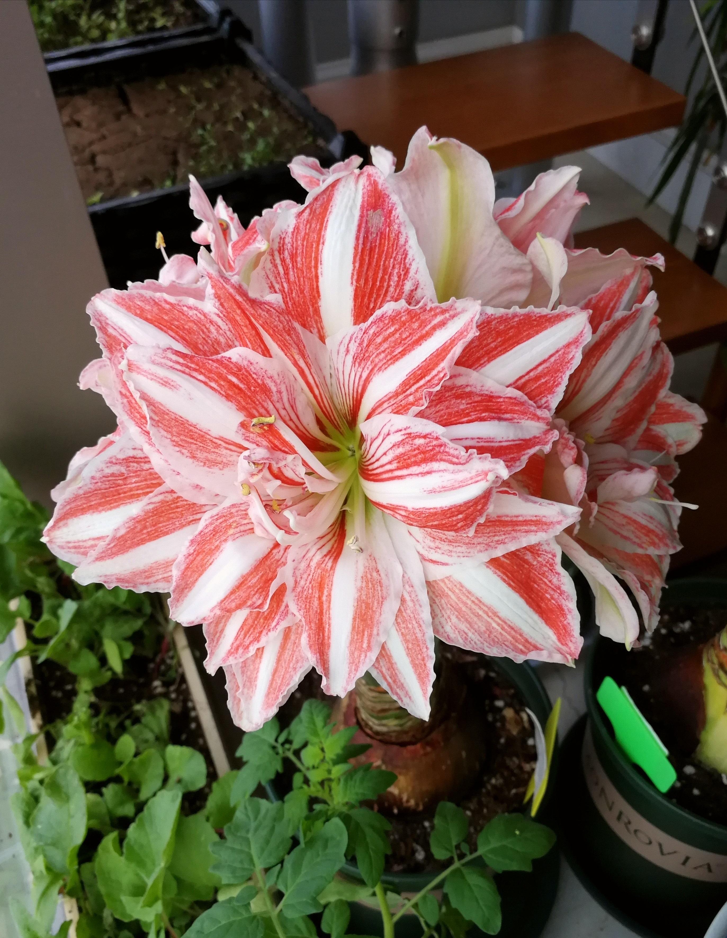 這種花名叫“跳舞皇后”(Hippeastrum Dancing Queen),簡(jiǎn)稱舞后,是球根花卉朱頂紅界的一個(gè)很的品種,屬于荷蘭朱,人工培育的園藝品種,專為觀賞而生,可地栽造景、做地被,也可盆栽觀賞,花朵還能當(dāng)切花,是世界上栽培多的朱頂紅之一,喜歡洋朱的花友幾乎人手一株,地位和微型月季里的“果汁陽(yáng)臺(tái)”差不多,很適合新手作為入門。