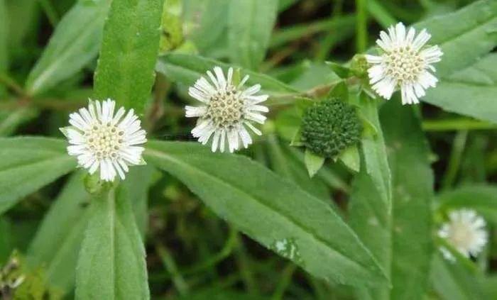 墨旱蓮,別名有鱧腸、旱蓮草、金陵草、墨頭草、黑口草、墨煙草、蓮子草、猢孫頭、豬牙草、墨菜等。墨旱蓮古稱“鱧腸”,早記載于《唐本草》。據(jù)《本草綱目》記載:鱧,烏魚也,其腸亦烏。此草柔莖,斷之有墨汁出,故名,俗稱墨菜是也,細(xì)實(shí)頗如蓮房狀,故得蓮名。