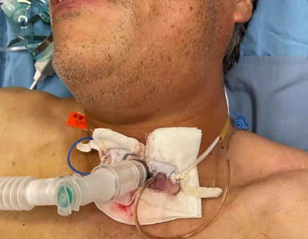 蔣先生被緊急送去手術(shù)室,切開氣管。當(dāng)時(shí),他的咽喉部和下頜腫脹,上呼吸道被全部壓扁,一絲氣都通不了。要不是綜合性醫(yī)院具備急救能力,蔣先生會被活活憋死。
