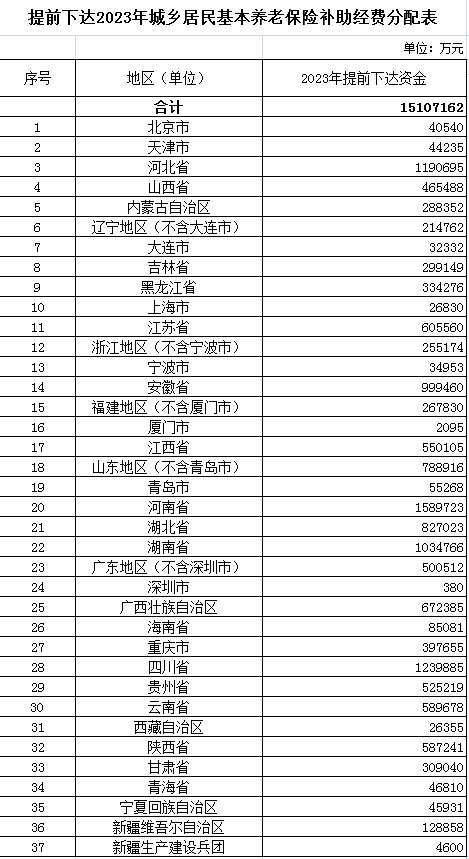 前段時間,財政部發(fā)布了《關(guān)于提前下達2023年 城鄉(xiāng)居民基本養(yǎng)老保險 補助經(jīng)費預(yù)算的通知》今天我們就帶大家來看看,在這份通知中,各地的補助經(jīng)費都是如何分配的。看看你的家鄉(xiāng)排在哪里!