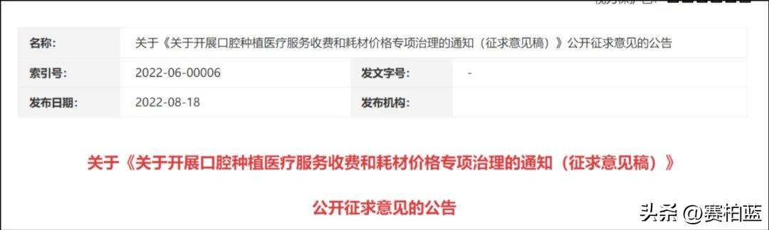 近日,醫(yī)保局發(fā)布《關(guān)于開展口腔種植醫(yī)療服務(wù)收費和耗材價格專項治理的通知(征求意見稿)》,明確提出,要推進種植牙集采,圍繞種植牙全流程做好價格調(diào)控工作,切實降低患者負擔。