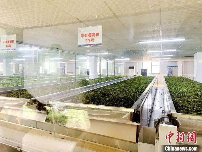 在華南地區(qū)首條自動(dòng)化、標(biāo)準(zhǔn)化、智能化紅茶加工生產(chǎn)線上,被采摘后的英德紅茶正在進(jìn)入萎凋環(huán)節(jié)。 許青青 攝