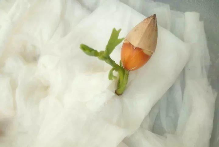 有了“突破口”,找個(gè)盤子墊上3-5層衛(wèi)生紙,用清水淋濕,再把銀杏種子放上去,擱在家里陰涼的窗臺位置,每天灑一次水保持衛(wèi)生紙濕潤,3-5天就能冒芽。