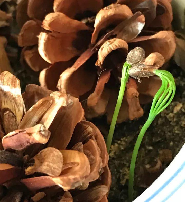 也可以提前把松子拿出來,輕輕埋土里,3-5天澆一次水,發(fā)芽無障礙~