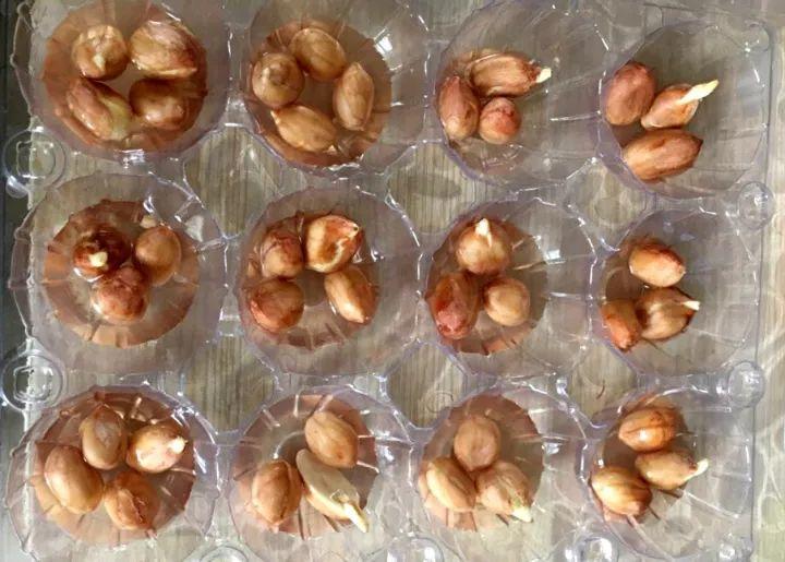 塑料蛋托或者塑料槽都可以利用起來,每個(gè)槽里放3-4?;ㄉ?,加點(diǎn)水,沒過花生的底部一點(diǎn)點(diǎn)即可,放在室內(nèi)沒有陽光的位置,3天左右就出芽。