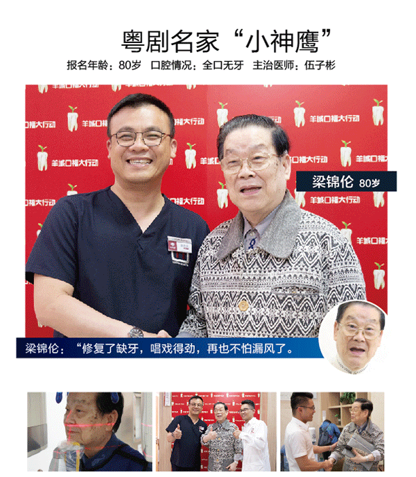 他精湛的技術(shù),認真負責(zé)的態(tài)度,讓很多市民慕名而來,指定找他看牙,就連粵劇表演藝術(shù)家“小神鷹”、《我愛你中國》作曲者鄭秋楓等羊城名人紛紛找他看牙。