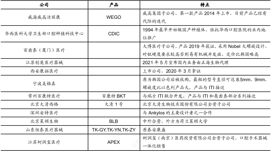 國(guó)產(chǎn)主要種植體企業(yè) 來(lái)源:各公司官網(wǎng),國(guó)海證券研究所
