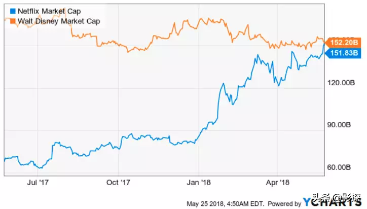 2018年,網(wǎng)飛與迪士尼的市值對(duì)比——伯仲之間