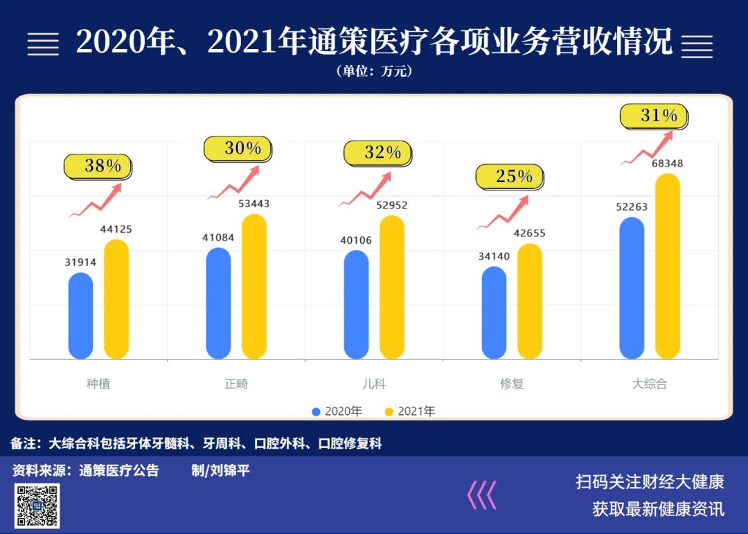 從2020年、2021年的財報數(shù)據(jù)來看,種植業(yè)務(wù)為通策醫(yī)療貢獻(xiàn)了可觀的收入,尤其是2021年收割4.41億元,同比增長38%,位列通策醫(yī)療五大業(yè)務(wù)板塊增速第一位。