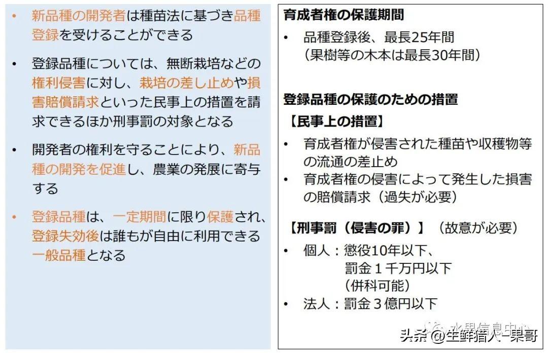 陽光玫瑰來到我國已經(jīng)多年,根據(jù)日本《植物品種及種子保護法》。自2006年起,“Shine Muscat”(陽光玫瑰)已在日本當(dāng)?shù)厣暾堉R產(chǎn)權(quán)保護,只是由于政府當(dāng)時并未做出出口決定,故未在海外申請品種注冊保護。