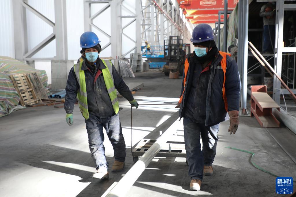 2022年12月12日,在位于蘭州新區(qū)的蘭州宏彬新能源發(fā)展有限公司,工人在搬運(yùn)建材,抓緊施工。新華社記者 馬希平 攝