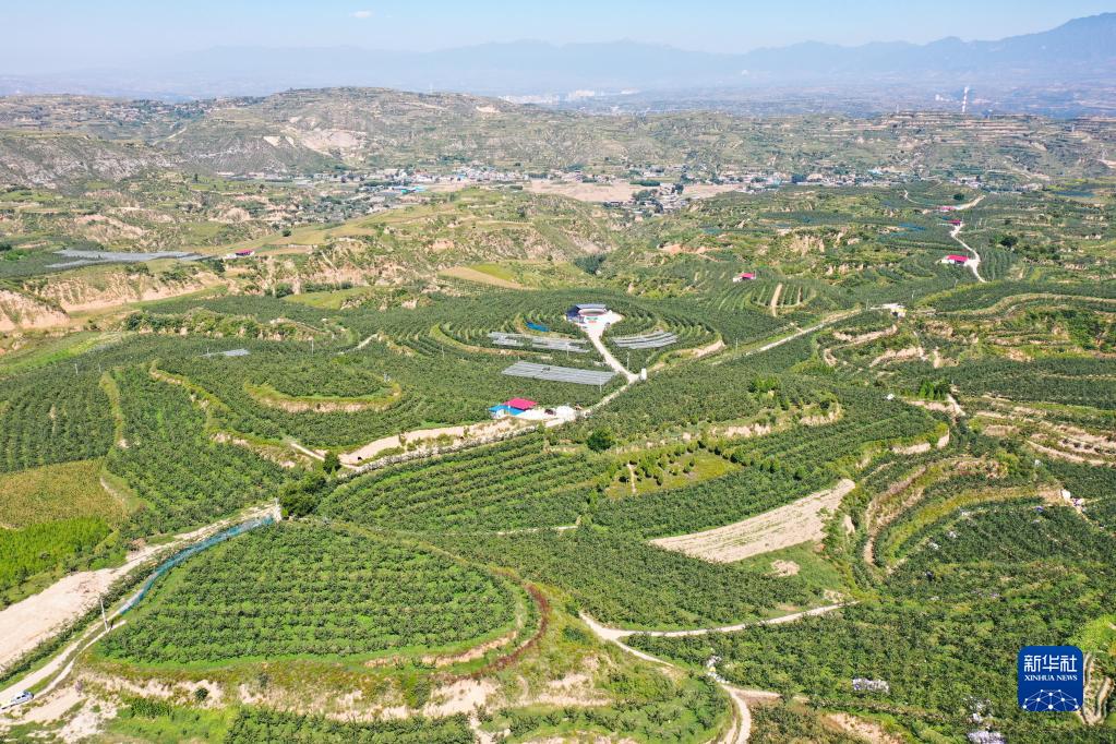 這是位于山西省汾西縣的一處梨園(2022年攝,無(wú)人機(jī)照片)。新華社發(fā)