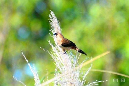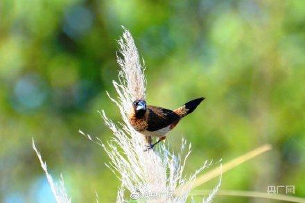 日前,一位攝影愛好者在安徽巢湖姥山島景區(qū)拍照時,無意中竟拍到了白腰文鳥的身影。白腰文鳥是小型鳥類,主要以稻谷、谷粒、種子、果實、葉、芽等植物性食物為食,也吃少量昆蟲等動物性食物。分布于尼泊爾、印度、斯里蘭卡、孟加拉國、緬甸、泰國、馬來西亞和印度尼西亞等地。據(jù)了解,白腰文鳥在安徽雖有分布,但在姥山島景區(qū)還是被拍到,這次意外的發(fā)現(xiàn),也為姥山島景區(qū)增添了一個新的鳥種。(記者 鮑玉嬋)