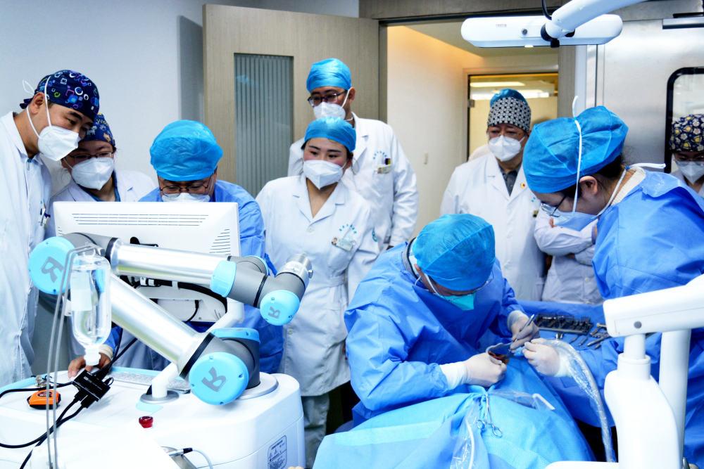 遠(yuǎn)程機(jī)器人輔助種植手術(shù)進(jìn)行中