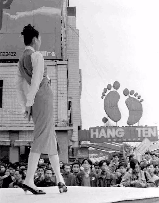 20世紀(jì)90年代,剛開(kāi)業(yè)不久的太平洋百貨門口的時(shí)裝秀(圖片來(lái)源:2018年11月14日《華西都市報(bào)》)