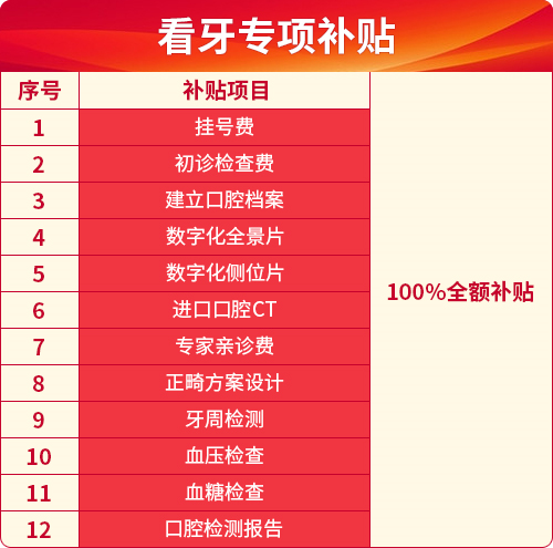 ●此次惠民醫(yī)療,為缺牙人士提供未納入醫(yī)保報銷范圍的看牙額外補貼。