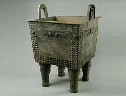 一問一答,引得許多參觀者駐足細(xì)看:方鼎直口深腹,平折沿,方唇,口沿上有對(duì)稱的圓拱形雙耳。鼎下承四柱足,上粗下細(xì),其內(nèi)中空,且直通腹部。鼎腹四外壁紋飾相同,每面四隅、兩側(cè)及下部,均飾有排列整齊的乳釘紋。整器鑄造精良,紋飾嚴(yán)謹(jǐn),形制雄渾大氣,極具威嚴(yán)之感。