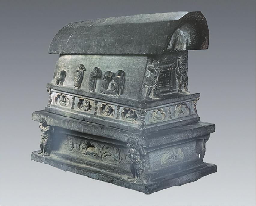 “這座北宋開寶九年石棺,1974年出土于鄭州開元寺遺址,通高100厘米,長(zhǎng)108厘米,具有重要的歷史價(jià)值?!睆埇|瑋介紹。石棺由棺蓋、棺身、棺座三部分組成。棺蓋呈七棱形,前寬后窄,蓋上陰刻纏枝牡丹花紋,中間有楷書題銘48字。石棺兩側(cè)浮雕“釋迦牟尼涅槃十弟子送葬圖”,棺身前后、下部和棺座雕有力士、伎樂人、異獸等。整個(gè)石棺雕刻精細(xì),線條流暢,人物各具情態(tài),逼真寫實(shí),表現(xiàn)出的藝術(shù)技巧。石棺基座上刻有修塔題記,其中有“東京左街相國寺”“東京右街開寶寺”等關(guān)于宋初國都開封城內(nèi)寺院方位的記述。