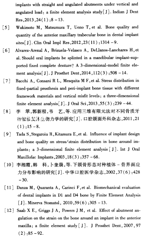 關(guān)鍵詞傾斜種植;不同質(zhì)量頜骨;應(yīng)力分析;三維有限元