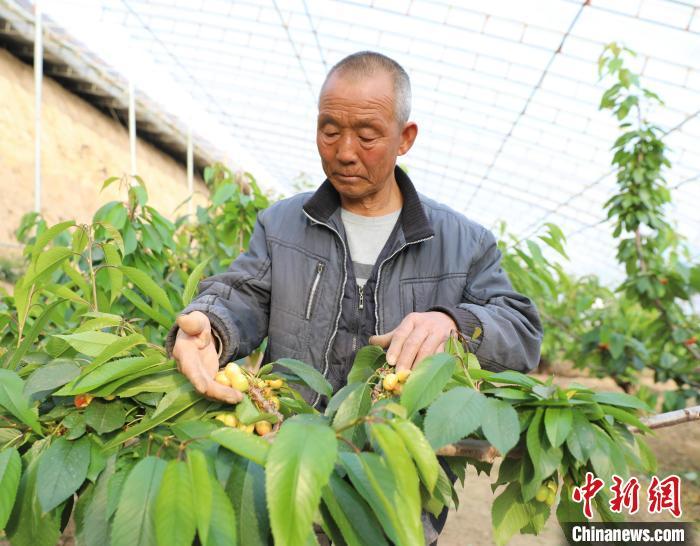 圖為在河北省固安縣儂人農(nóng)業(yè)園溫室大棚內(nèi),社員正對櫻桃進(jìn)行管理。 門叢碩 攝