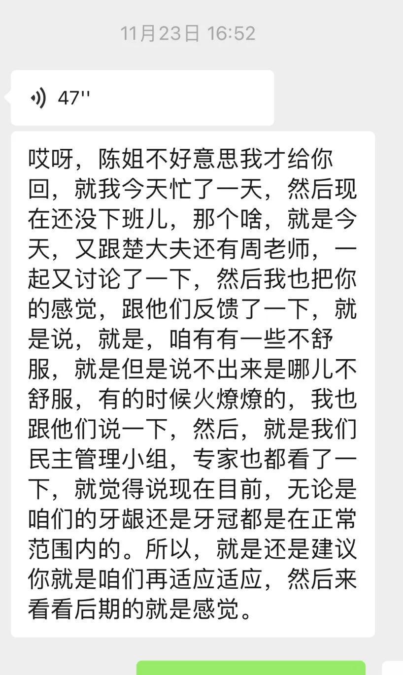 吉大口腔的周延民主任和什么民主管理小組的醫(yī)生說 這些?我所有的?癥狀 疼 難受 空隙大等都是正常的