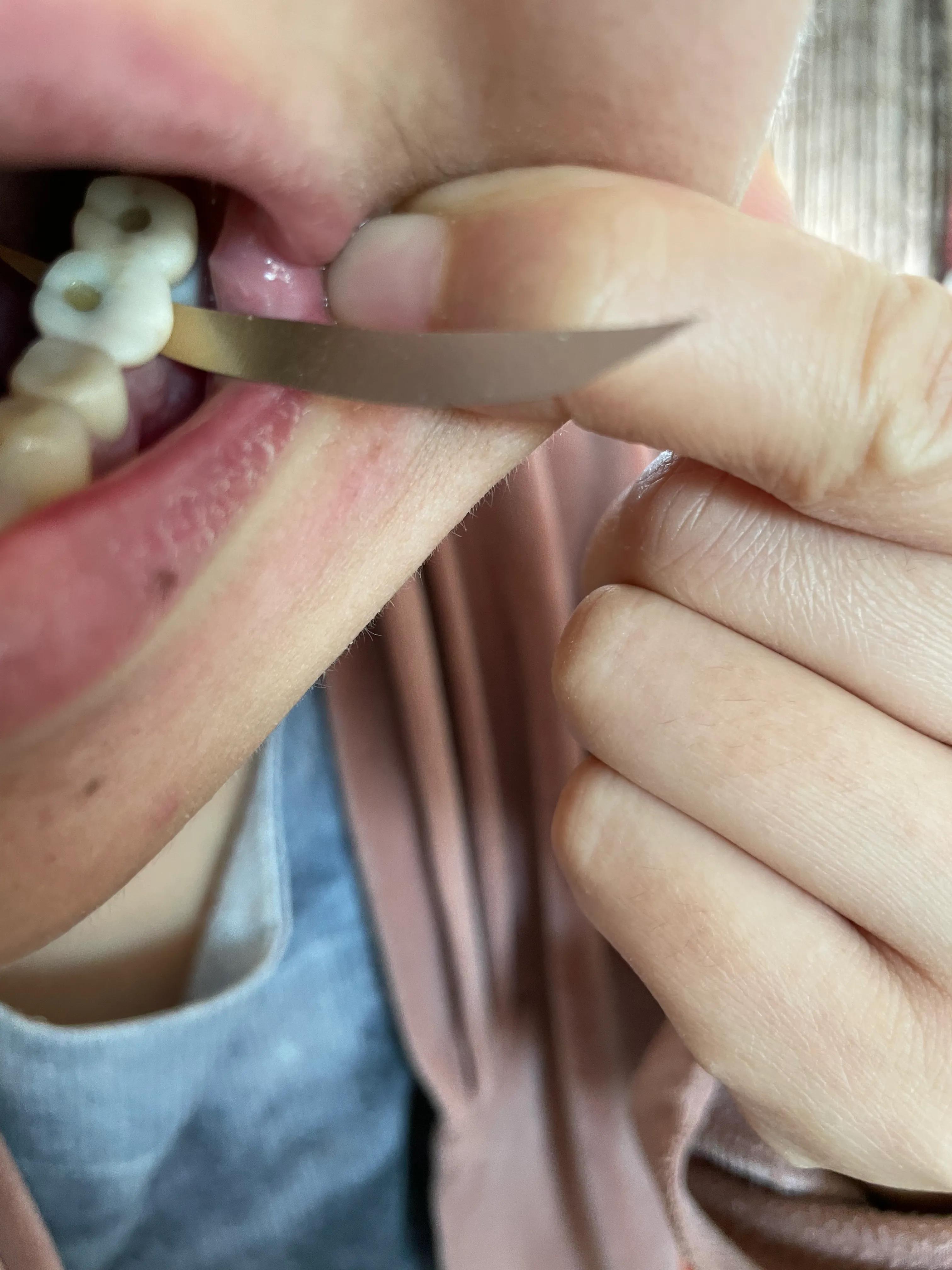 我不是專業(yè)醫(yī)生 不懂他們所說的正?,F(xiàn)象都包括什么 要怎么后期維護(hù) 我現(xiàn)在先不講看不見的難受 疼 先講直觀能看見的 他們哪位醫(yī)生可以做到把大米粒塞到牙齒下面 和將近半厘米的塑料條塞過他們的牙齒 吃過東西就要用沖牙器 不然隔頓就臭了