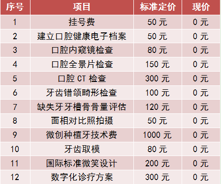 還有超十項(xiàng)拍片、口掃等費(fèi)用全免