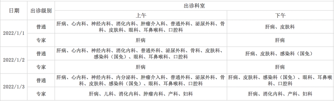 2022年1月1日(周六)至2022年1月3日(周一):均為上午半日門診,按節(jié)日門診出診。