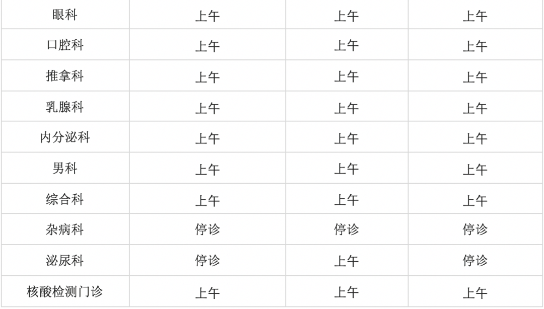 節(jié)日期間急診、發(fā)熱門診24小時開放,核酸檢測門診每日上午開放。明醫(yī)館、老年科、疼痛科、營養(yǎng)科、雜病科停診。