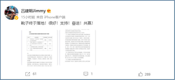 對(duì)于上述政策,通策醫(yī)療的董事長呂建明更是在昨晚第一時(shí)間通過微博發(fā)出放寬條件截圖,并發(fā)表評(píng)論稱,“靴子終于落地!很好!支持!奮進(jìn)!共贏!”