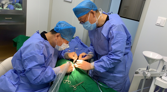 唐山市協(xié)和醫(yī)院牙體牙髓一科董志堅(jiān)主任(左)正在做種植牙手術(shù)