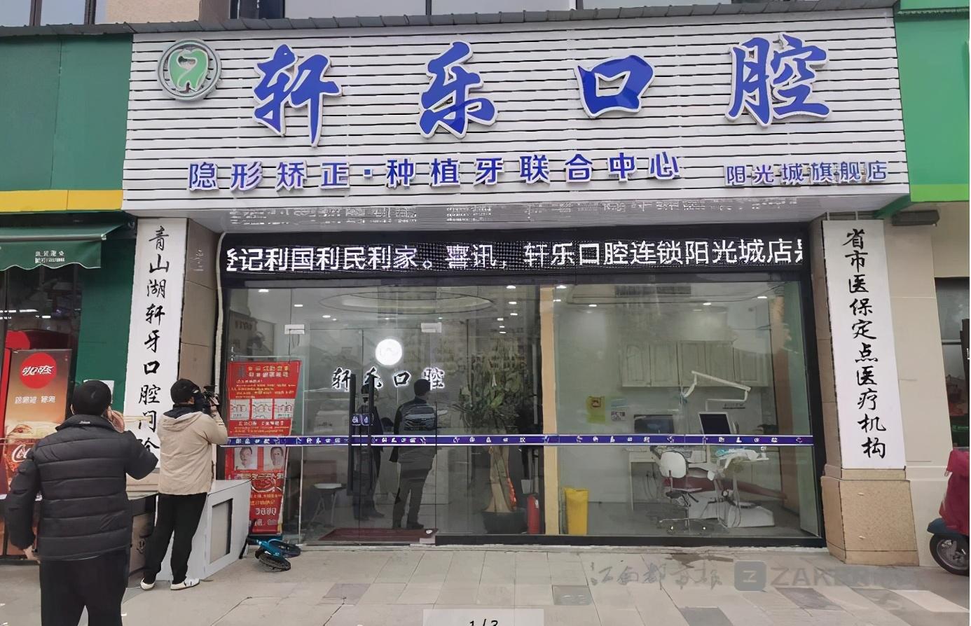 “軒牙口腔”店門上掛的招牌是“軒樂口腔”