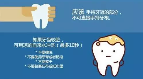 掉在地上的牙齒很臟,不能用紙巾包起來,要到水龍頭下沖洗干凈后泡在鹽水里。