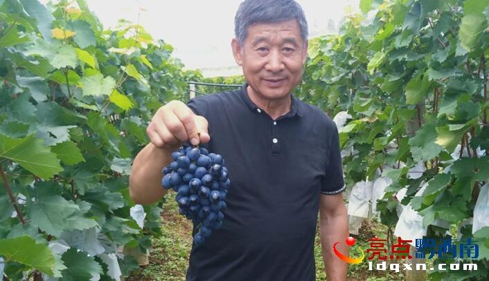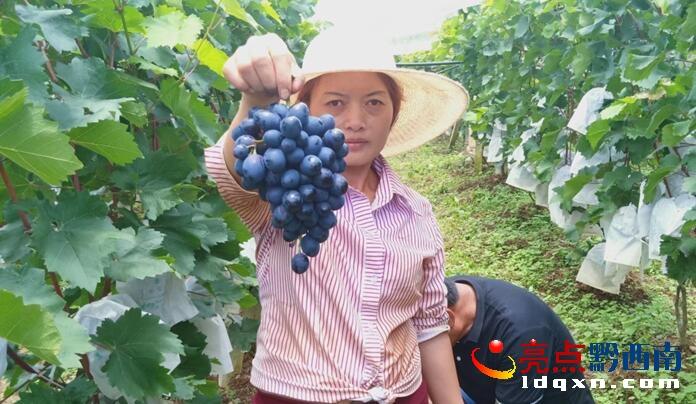聽說奔坡的葡萄熟了。8月17日,筆者趕到到興義市白碗窯鎮(zhèn)普哈村奔坡村民組黑皇后葡萄園,在葡萄園負(fù)責(zé)人胡榮春和工程師張洪光的引領(lǐng)下跨入葡萄園。