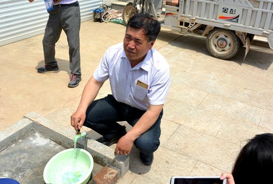 圖為灌河村村民趙志軒向記者展示自來水管里流出的清澈“長江水”
